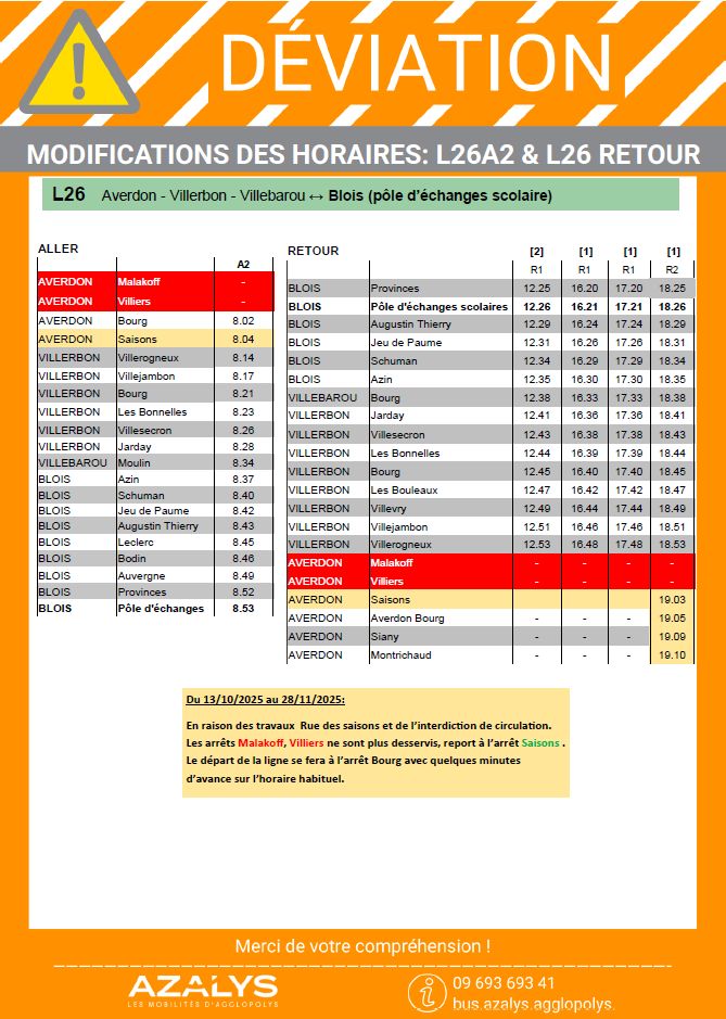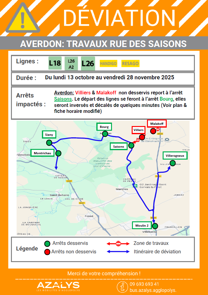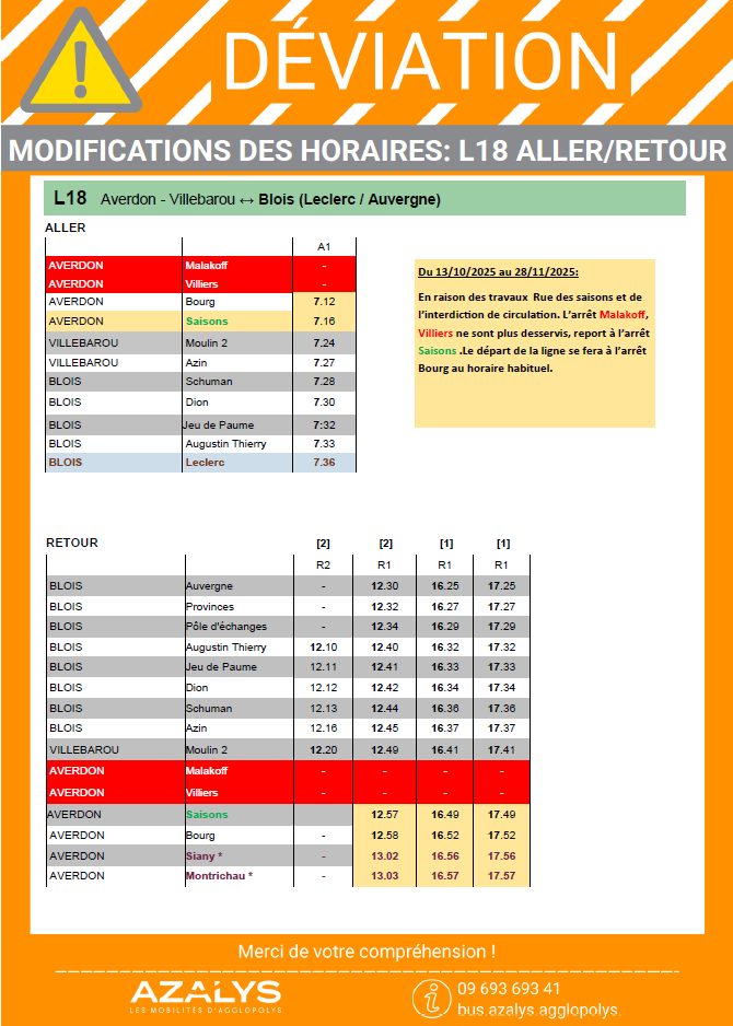 Ces modifications sont valables à partir du lundi 13 au vendredi 17 octobre 2025.