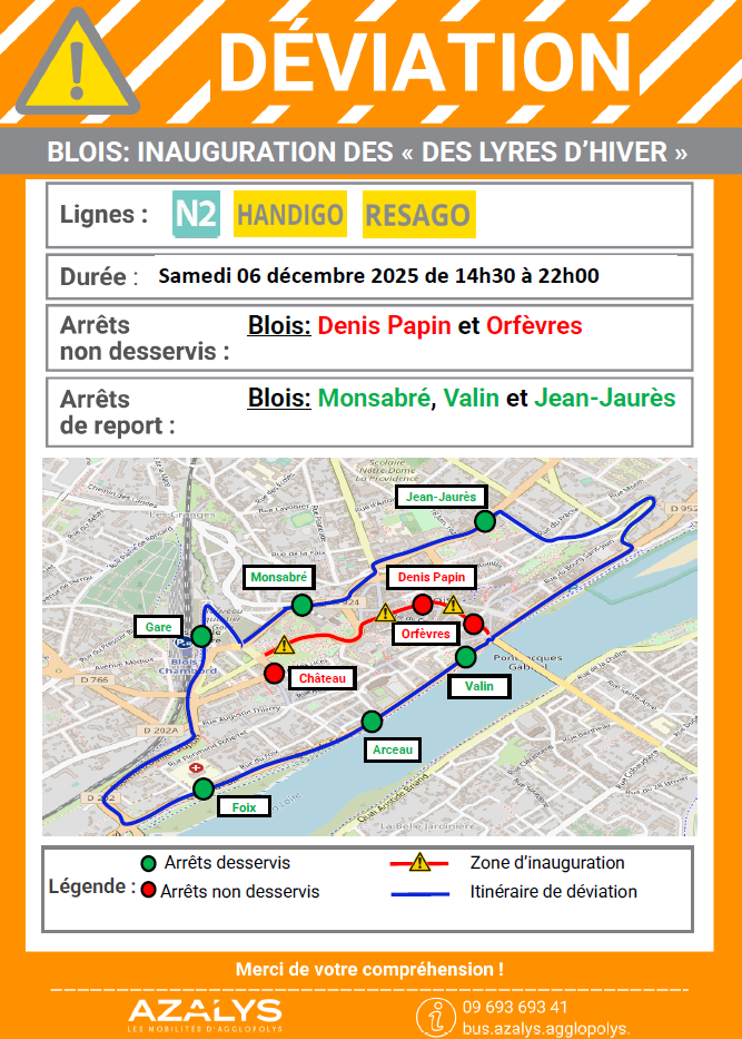 > Les arrêts Gabellière sont reportés aux arrêts Rivière des Bois et Tilleuls.