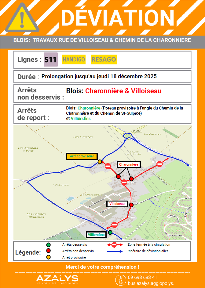 L'arrêt Marmignolles ne peut être desservi. Les élèves sont invités à se reporter à l’arrêt « Coq en buis ».