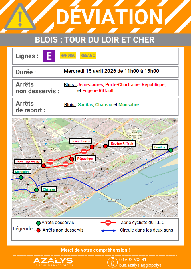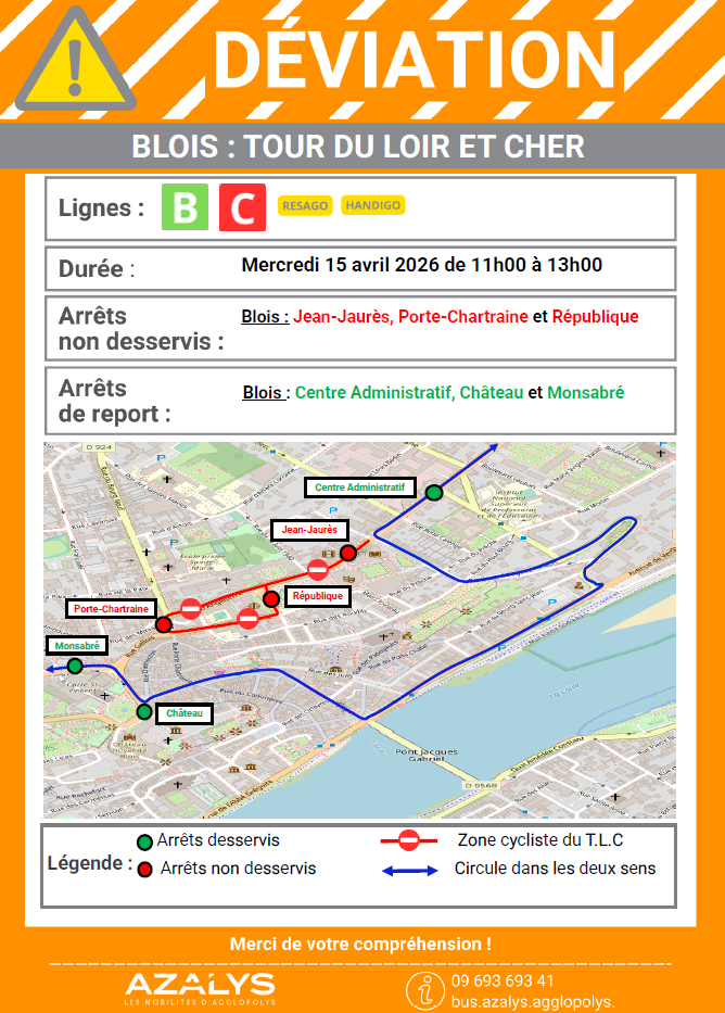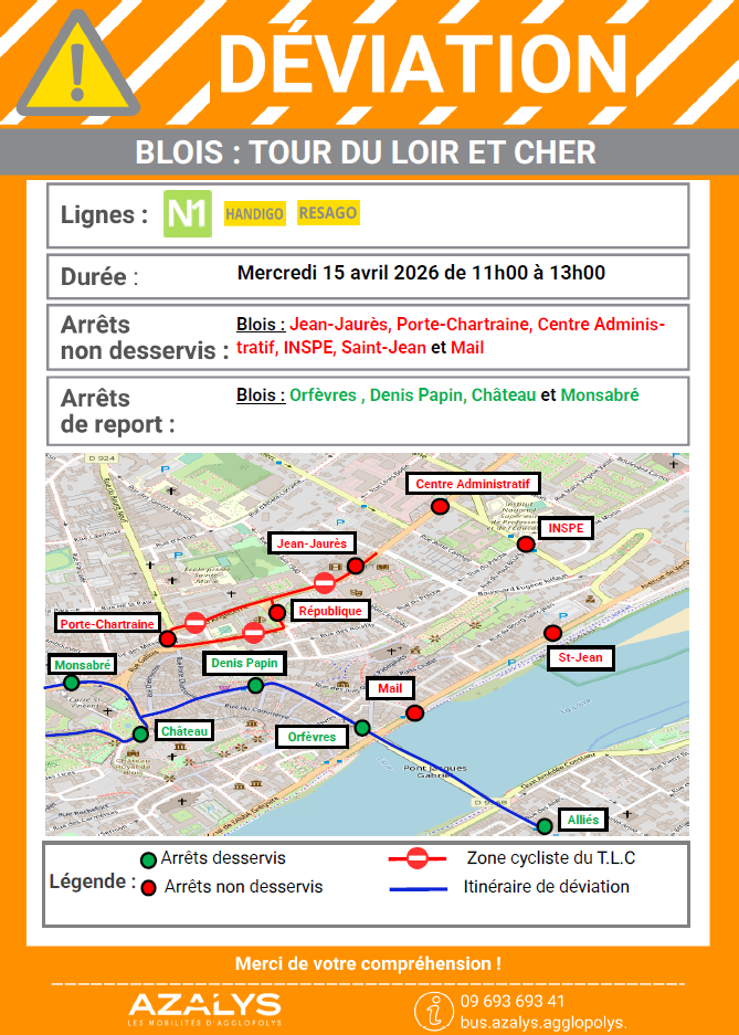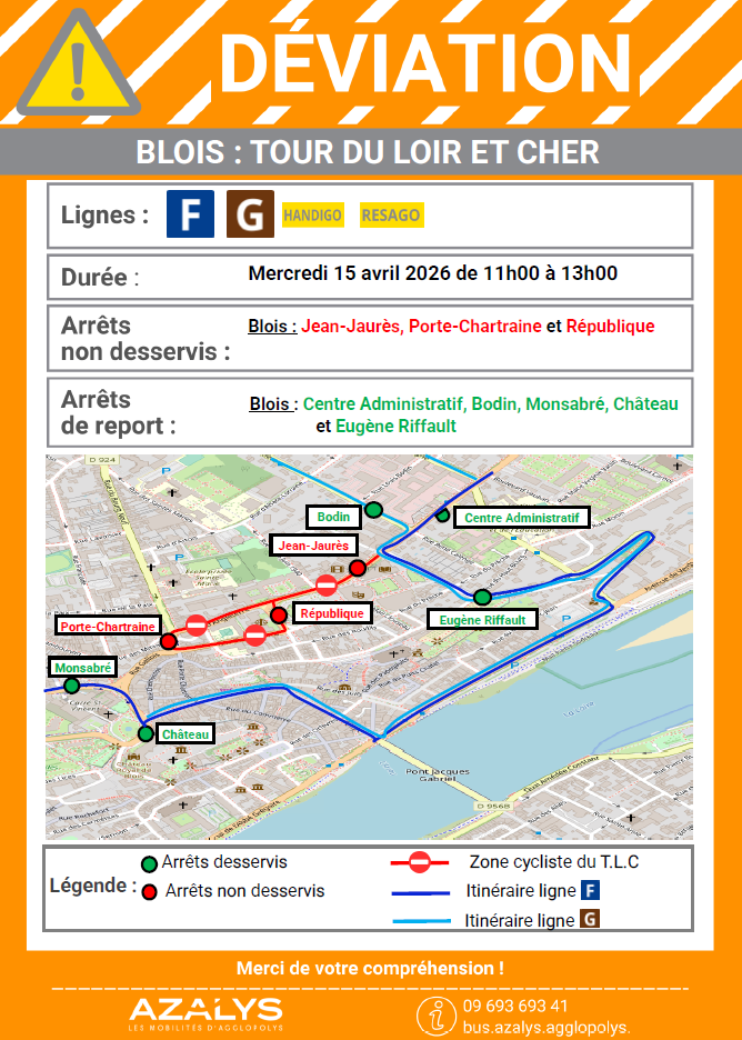 Le réseau AggloBus adapte les itinéraires des lignes 1, 2, 3, 4, 11, 22, 23 et des Navettes de centre-ville du mardi 14 au lundi 20 avril 2026 inclus.