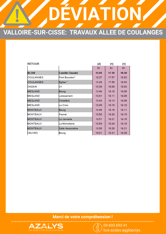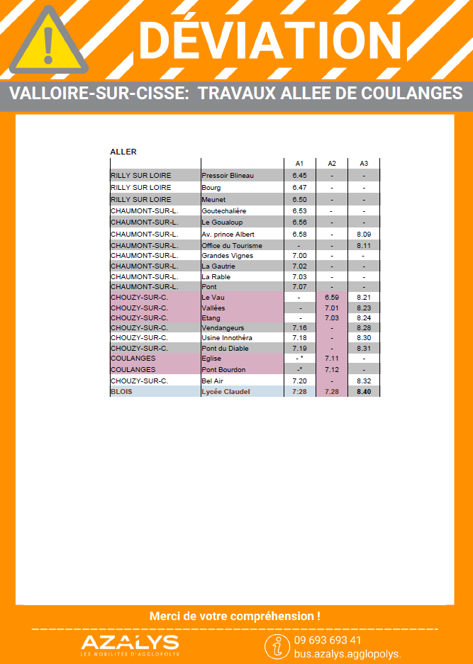 Des travaux en cours et à venir dans le secteur Nazelles-Négron / Pocé-sur-Cisse entraînent des perturbations sur les parcours des cars de la ligne TA pour les prochains mois.